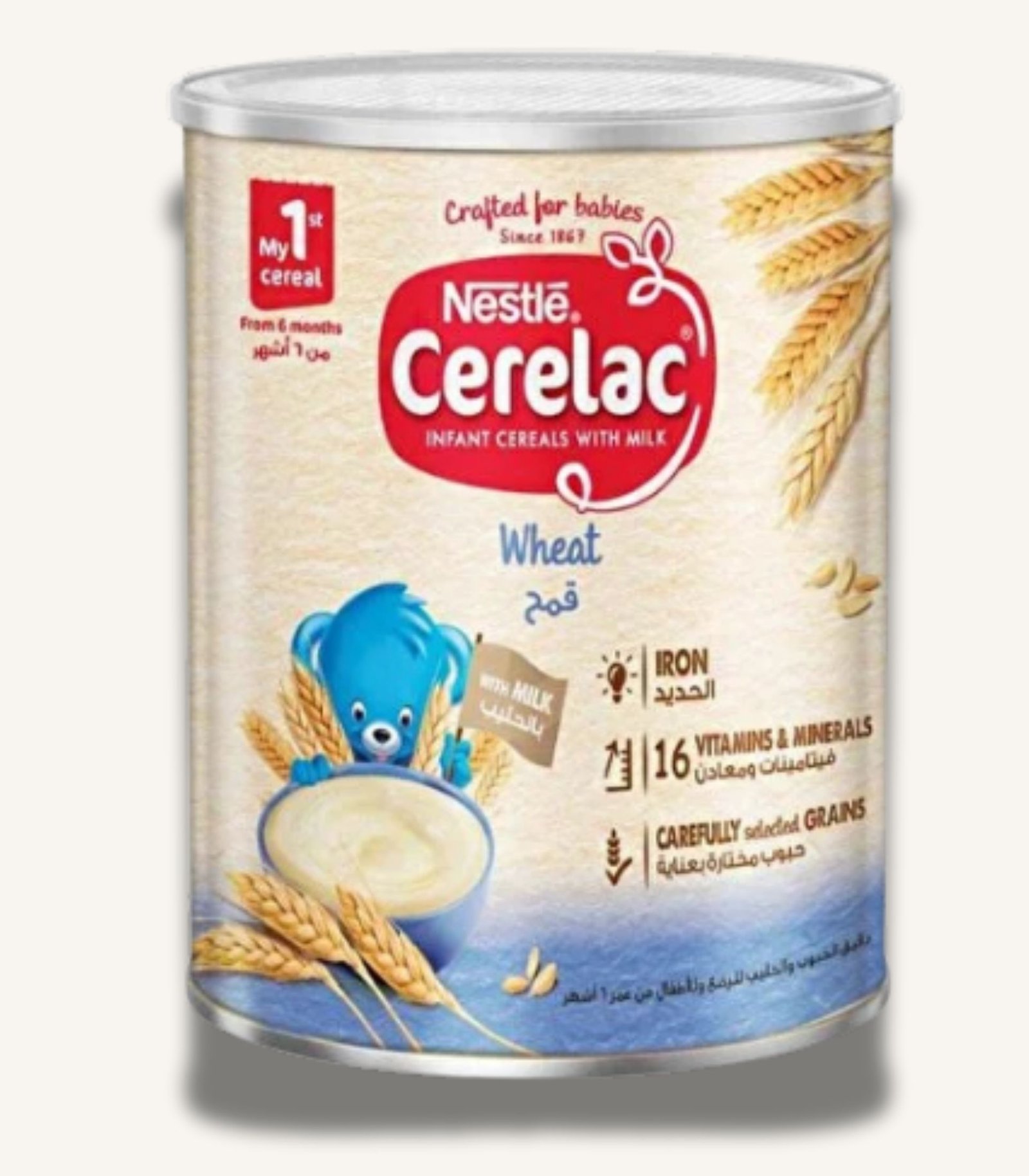 Cerelac wheat from 6 months 400g is an infant cereal designed to support your baby’s weaning stage with an easy-to-digest texture and balanced nutrition. It is suitable as a complementary food alongside a varied diet (and breastmilk or formula, as applicable). It is labelled for babies from 6 months (always follow your pediatrician’s advice for starting solids). This cereal is made to mix smoothly and can be offered as a warm meal at breakfast or snack time. For varieties that include milk, it may be prepared with water as directed; for non-milk varieties, preparation may allow water or milk depending on the label. Flavour/variant notes: wheat. Pack size: 400g. Important notice: Always supervise feeding. Do not add extra sweeteners. Store the product sealed in a cool, dry place and use within the recommended period after opening.