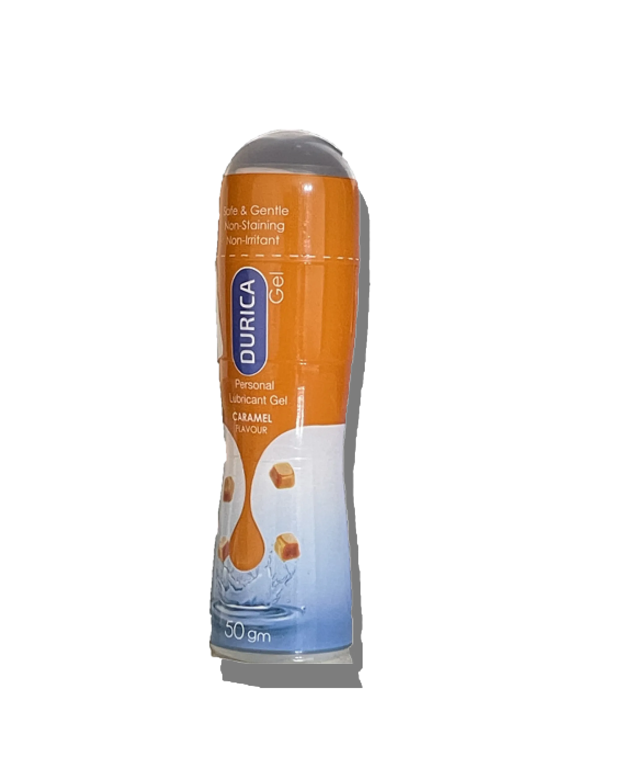 Durica Caramel Lubricant is a 50g gel providing a silky, long-lasting glide with a sweet caramel flavor. It is non-sticky and water-based to enhance comfort and intimacy by reducing friction.