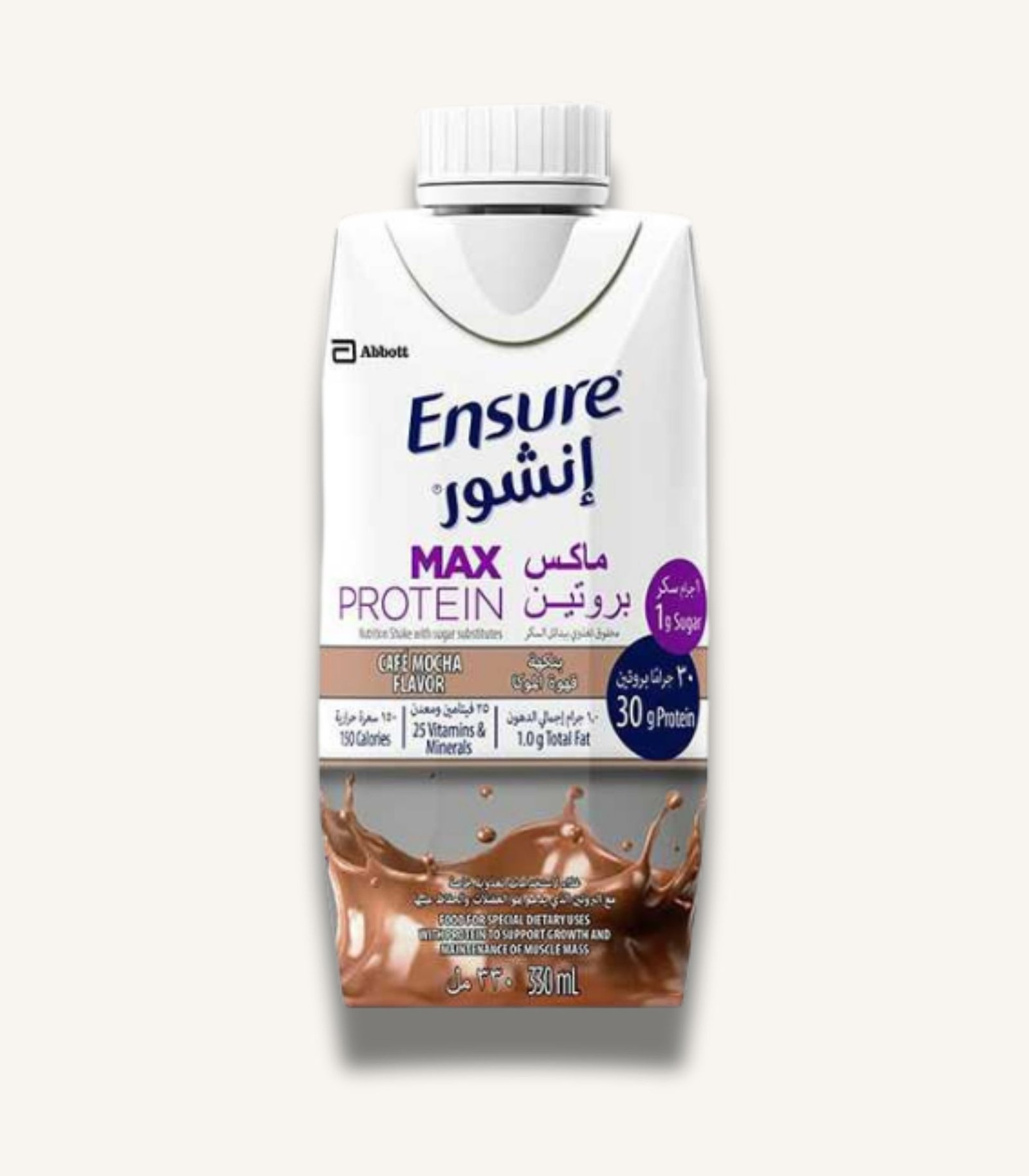 Ensure max protein (chocolate) 330ml is a ready-to-drink high-protein nutrition drink designed to help support protein intake as part of a balanced diet. It can be used on the go, as a convenient snack, or to support increased protein needs. Suitable for adults who want a practical, portioned protein drink option. Flavour: Chocolate. Pack size: 330ml. If you are on a medically restricted diet or have specific nutritional requirements, consult a healthcare professional.