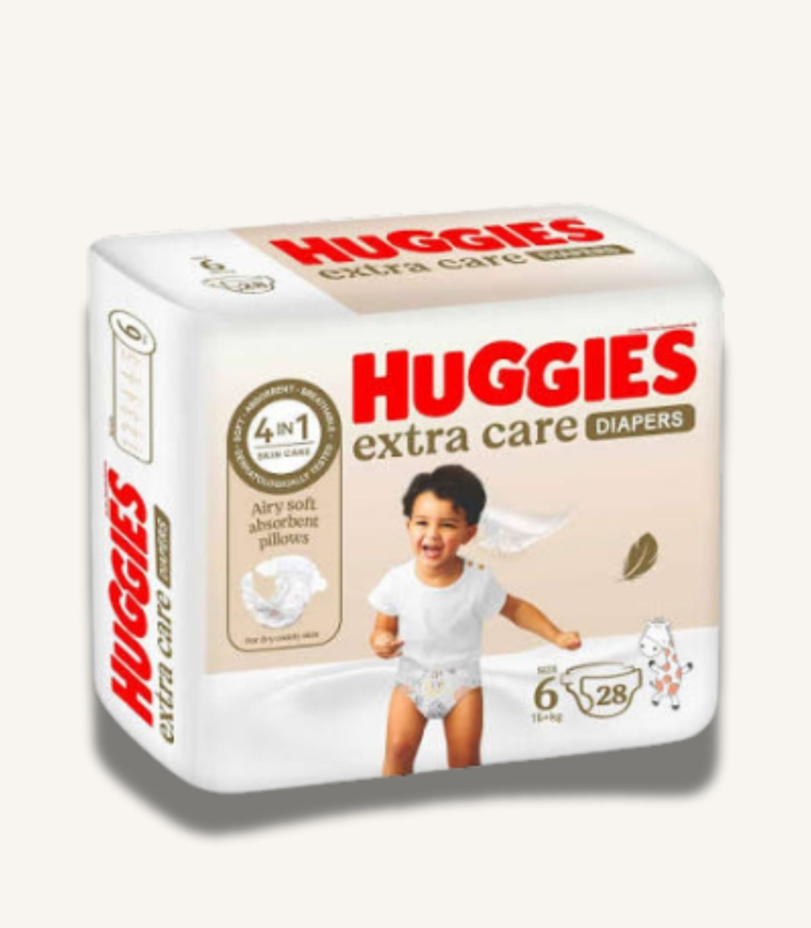 Huggies Extra Care (Size 6, 15+ Kg, 28 Diapers ) are diapers designed to keep your baby comfortable and dry throughout the day and night. They feature a soft, breathable feel with a secure fit to help reduce leaks and support easy movement. Size: 6. Pack count: 28. A practical choice for everyday diapering at home or on the go, with gentle materials suitable for baby’s skin.