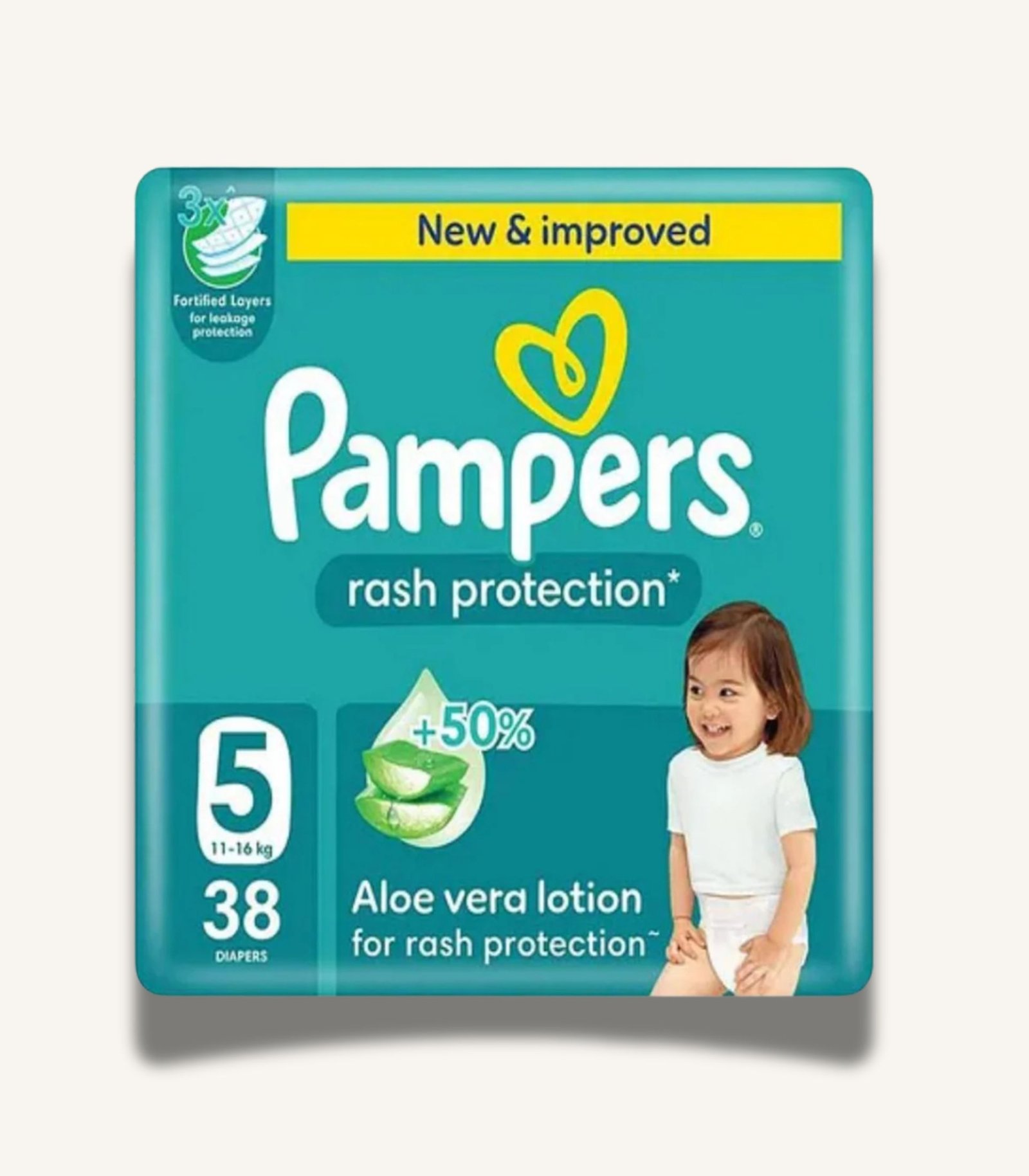 Pampers Rash Protection (Size 5, 11-16kg, 38 Diapers) are diapers designed to keep your baby comfortable and dry throughout the day and night. They feature a soft, breathable feel with a secure fit to help reduce leaks and support easy movement. Size: 5. Recommended weight range: 11–16kg. Pack count: 38. A practical choice for everyday diapering at home or on the go, with gentle materials suitable for baby’s skin.