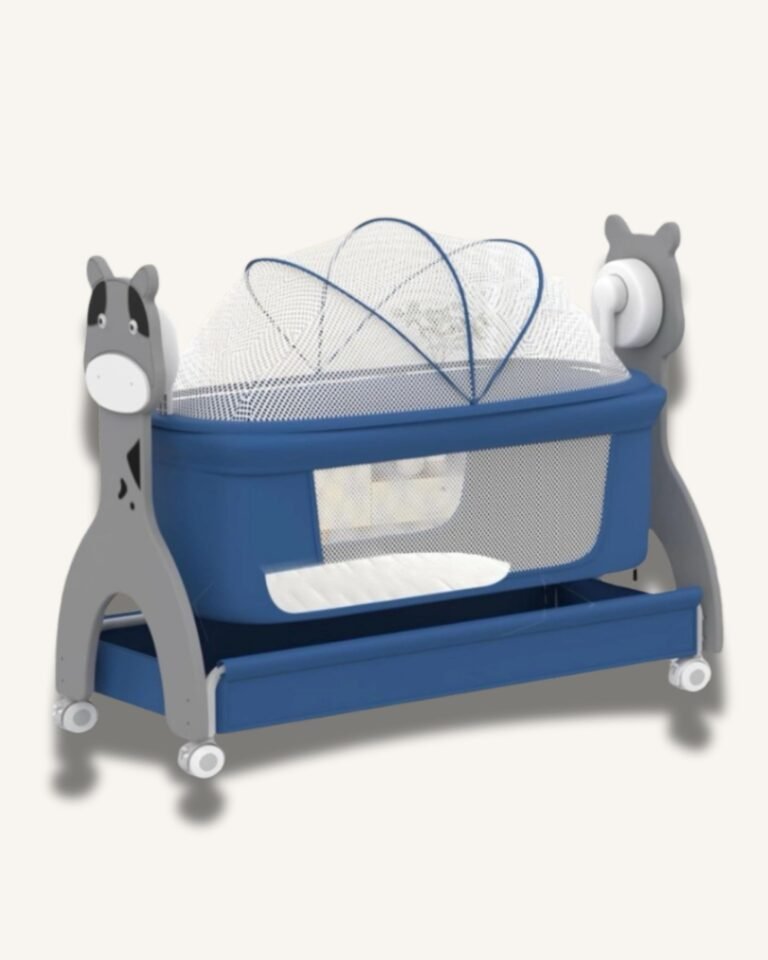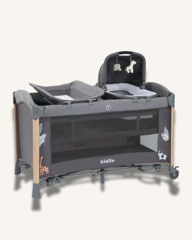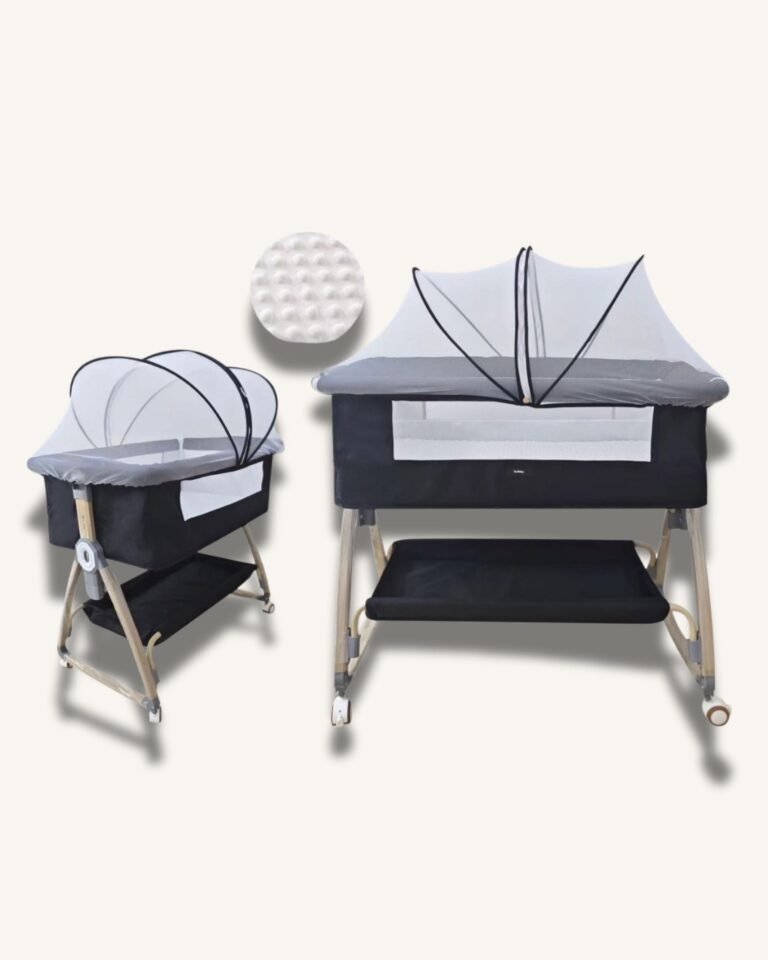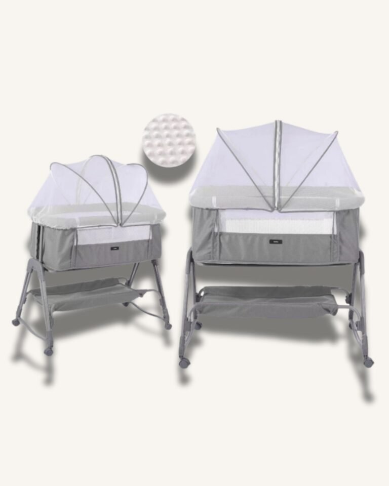 Kidilo 4 In 1 Smart Bed is a multifunctional infant sleeping solution that transforms between bedside sleeper, playard, standalone bassinet and rocking cradle. It is designed to support different stages of baby care in one system.